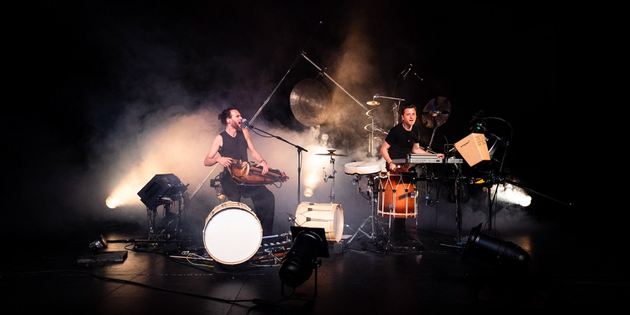 Il y a la rencontre de deux alchimistes du son, de deux musiciens créateurs … Puis il y a la fusion de leurs univers, celui de la vielle à roue et des percussions. Chemin initiatique sonore, exploration, performance hybride, Sébastien Gisbert et Guilhem Desq nous livrent un spectacle époustouflant emprunt d'urgence et de poésie... Embarquement pour un voyage lointain aux imaginaires fabuleux et enivrants !